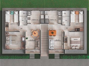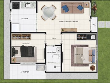 Você pode escolher entre 3 opções de planta: casas 2/4, apart 2/4 com quintal e apart 2/4 com varanda.