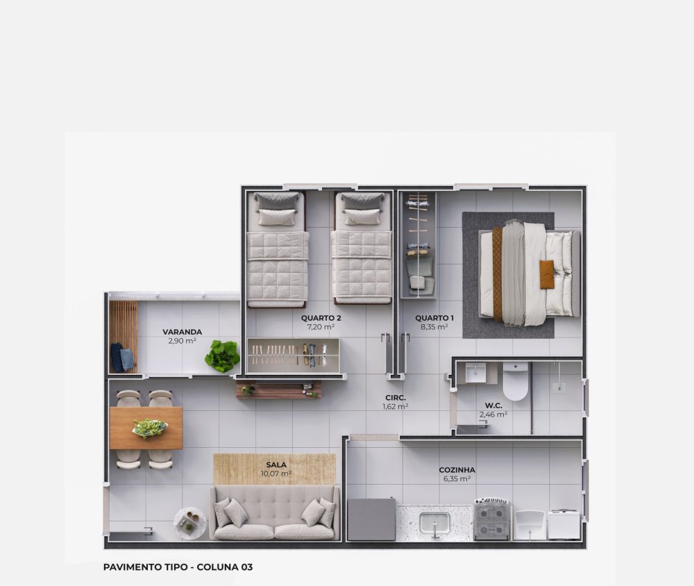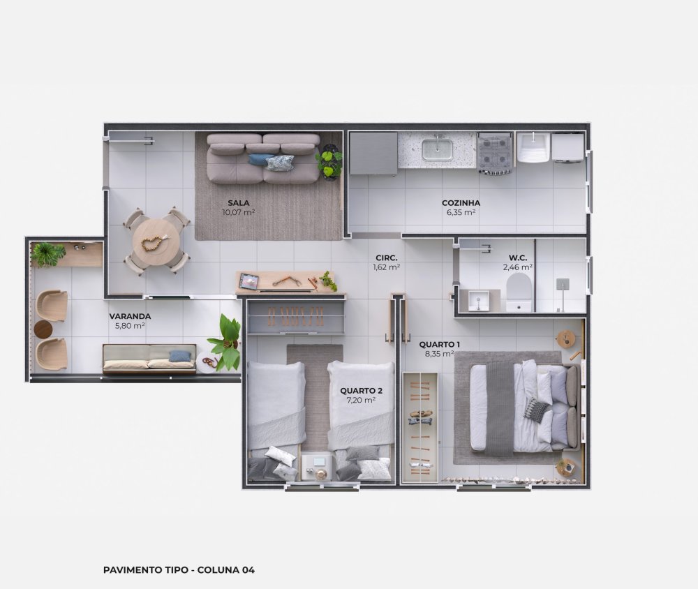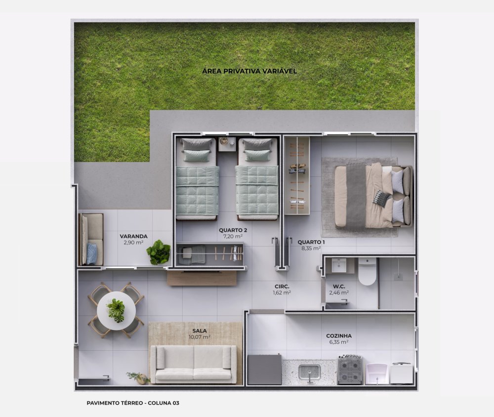 - Área Privativa: 43,17 m²