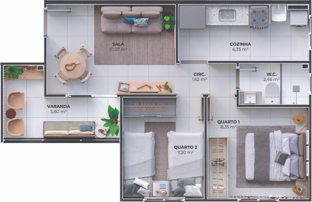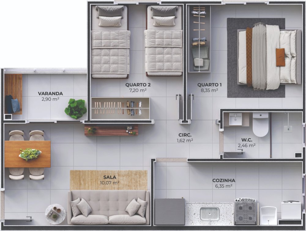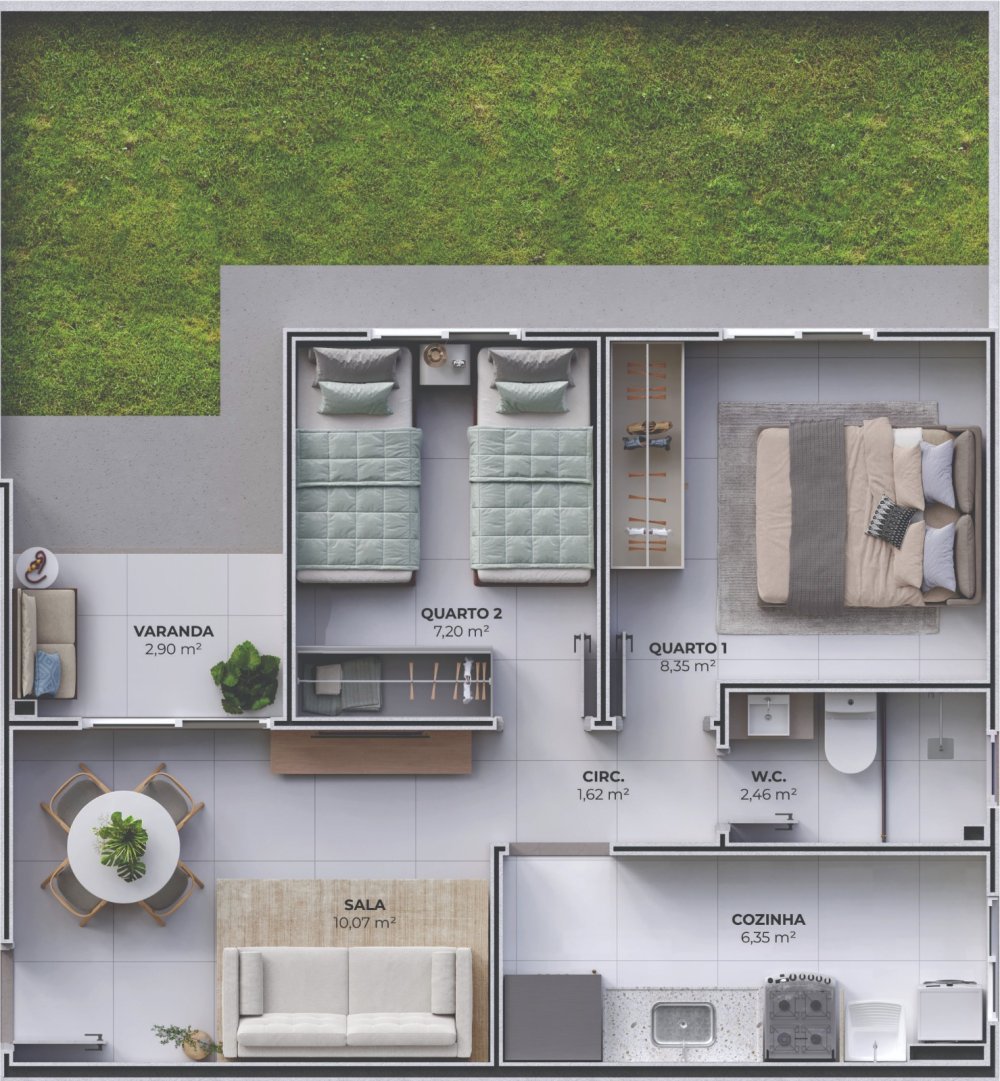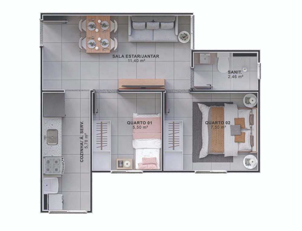 - Área Privativa: 43,17 m²