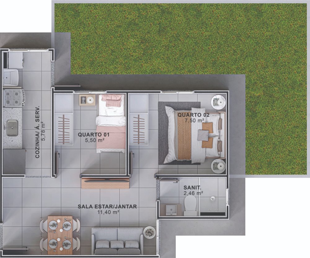 Aqui sua vida floresce em um condomínio clube completo, com lazer, segurança e áreas comuns entregues equipadas e decoradas. É a oportunidade de viver com qualidade, tranquilidade e um futuro cheio de possibilidades.